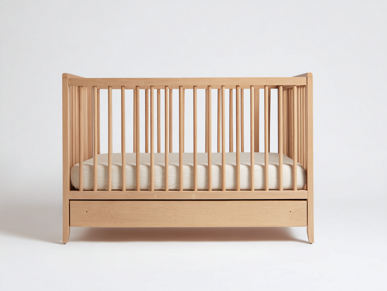 Culla in legno con cassetto inferiore - 126x68x92 cm - colore naturale - per cameretta - design moderno minimalista