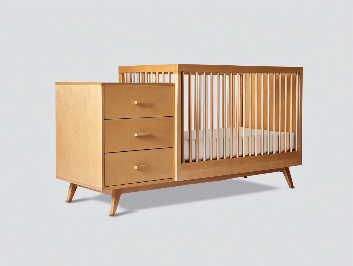 Culla in legno con cassettiera integrata - 148x72x94 cm - colore naturale - per cameretta - design moderno nordico