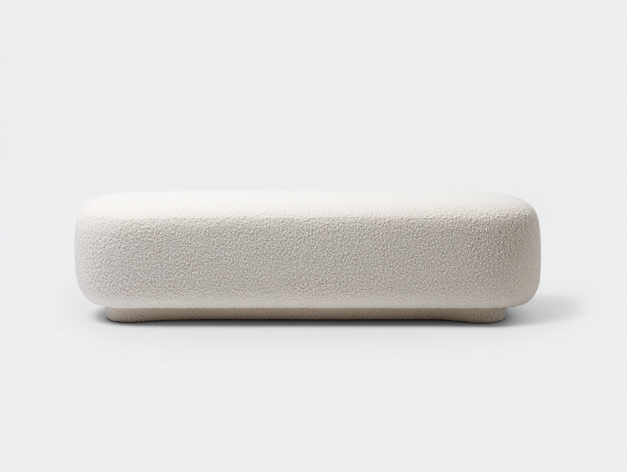 Panca imbottita bouclé - 160x50x42 cm - bianco crema - per soggiorno - design moderno arrotondato