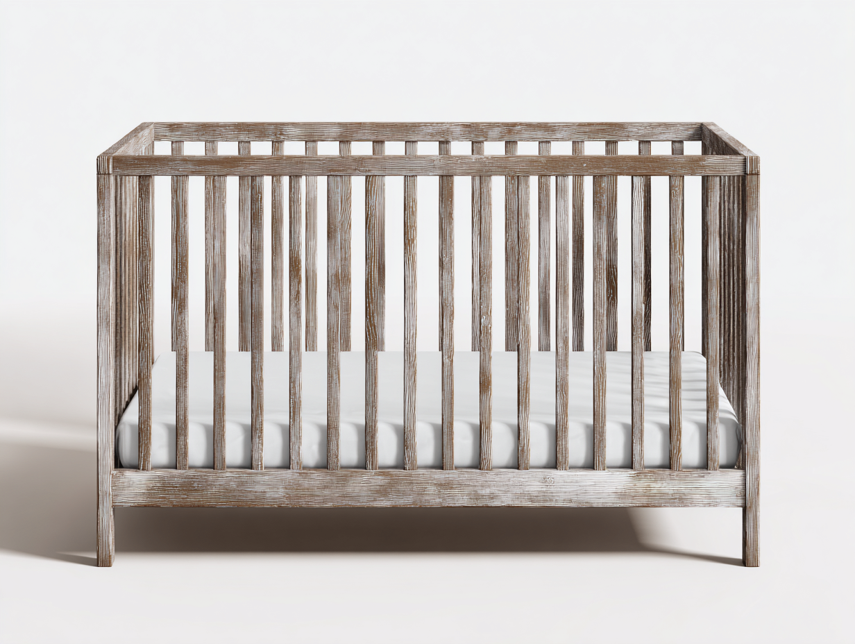 Culla in legno con sponde verticali - 130x70x95 cm - marrone effetto invecchiato - per cameretta - design rustico moderno