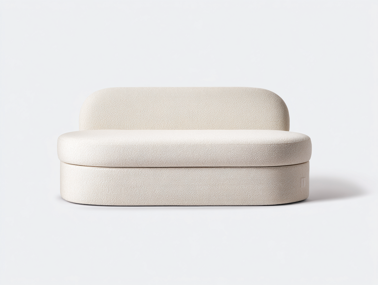 Panca imbottita con schienale - 140x70x75 cm - crema - per soggiorno - design moderno arrotondato