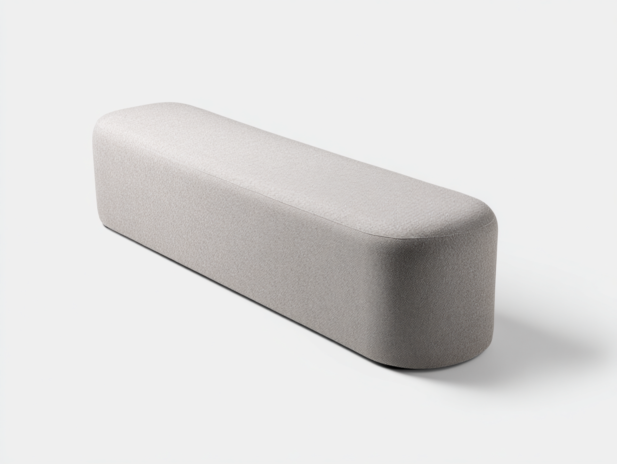 Panca imbottita lunga - 135x45x40 cm - grigio chiaro - per soggiorno - design moderno arrotondato