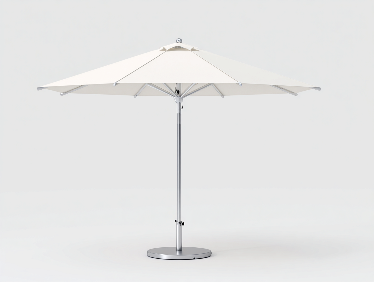 La struttura è realizzata con palo centrale in metallo e componenti resistenti progettati per l'utilizzo all'aperto. Il tessuto dell'ombrellone in colore beige chiaro offre protezione dalla luce solare e mantiene un aspetto raffinato e contemporaneo.